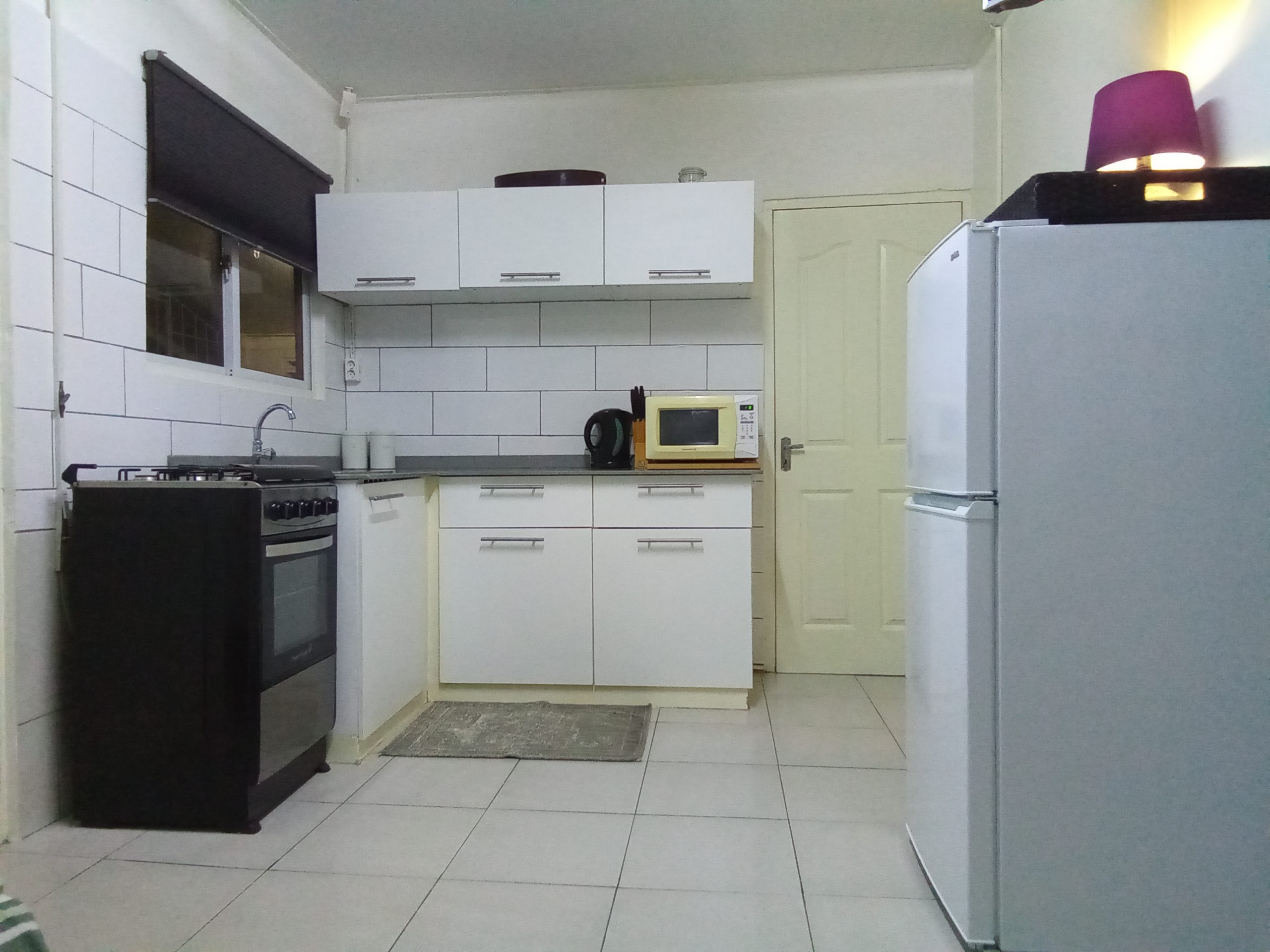Pressurized water system, television, radio, stove, refrigerator, various kitchen utensils, kettle, rice cooker, iron, ironing board, washing machine and washing lines.